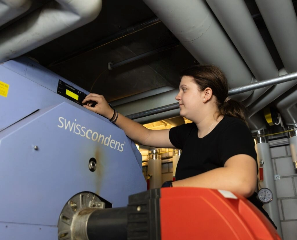 Kaminfeger:innen arbeiten mit modernem Werkzeug, präzisen Messgeräten und fundiertem Know-how. Sie kontrollieren Heizsysteme, beraten Kund:innen und sind auch mal hoch oben auf dem Dach im Einsatz. Kein Tag ist wie der andere.