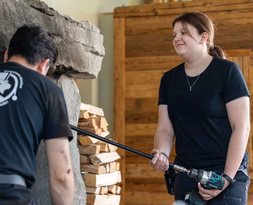 Als Kaminfegerin komme ich an viele schöne Orte und lerne jeden Tag Neues über Kamine und Öfen. Meine Cousine und mein Neni haben mir den Beruf gezeigt und seither weiss ich, dass er perfekt zu mir passt.